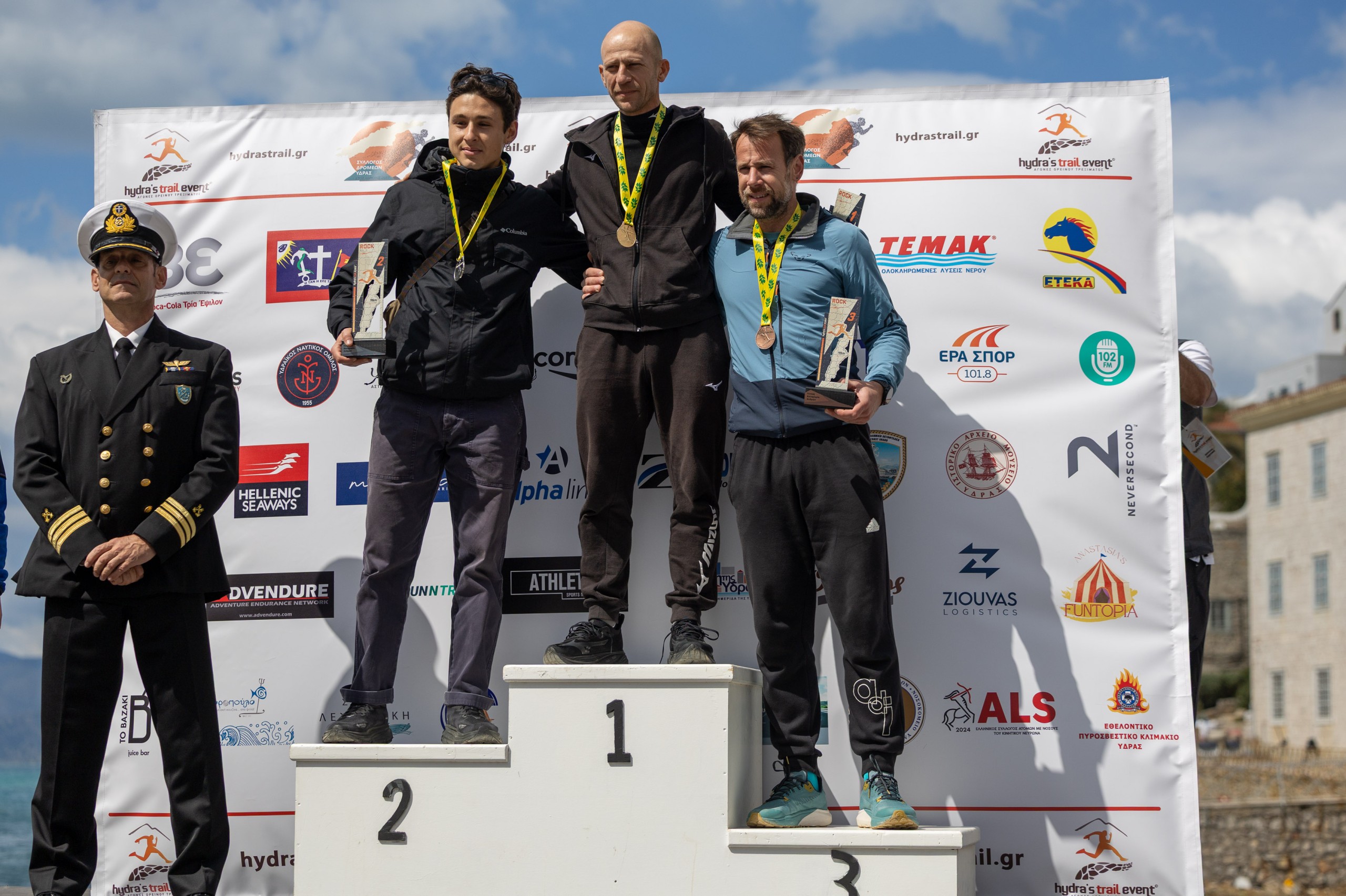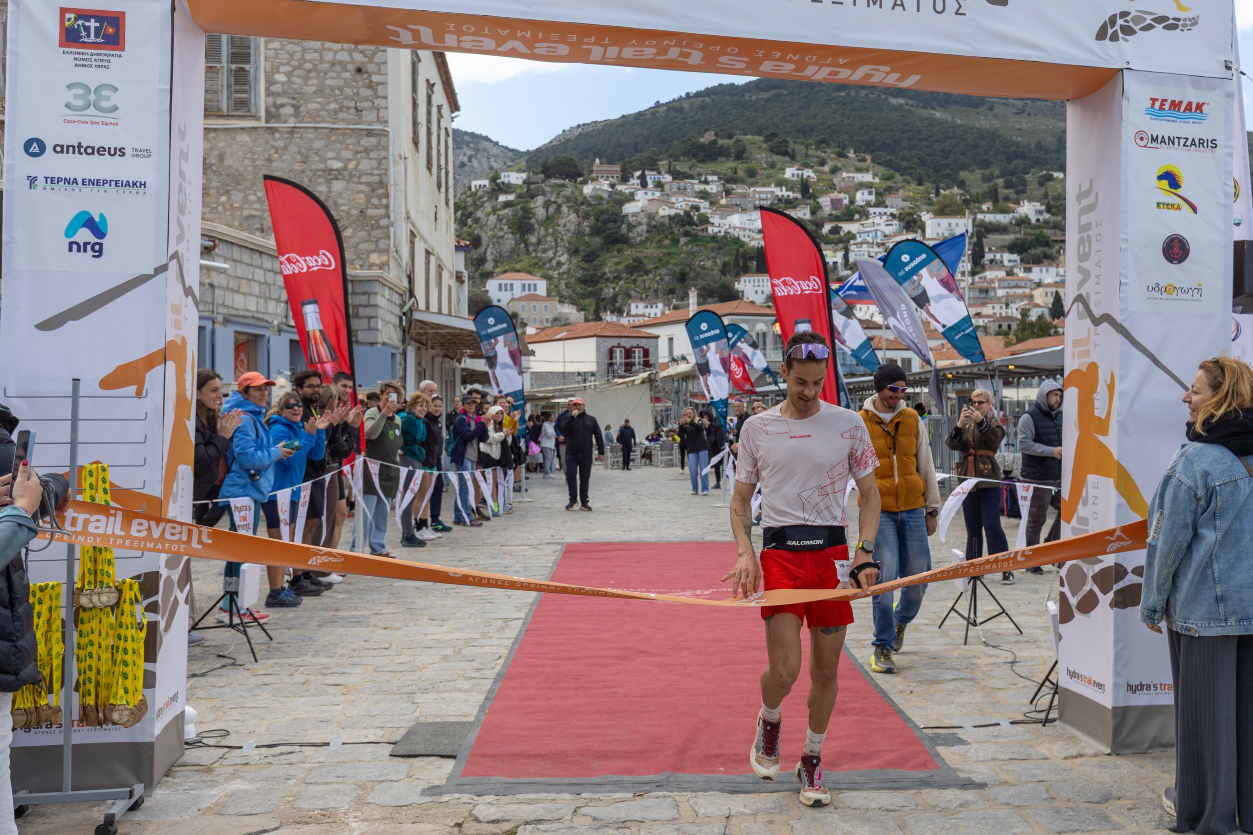 Οι επιδόσεις ξεπέρασαν κάθε προσδοκία. Στο Hydra’s Trail Marathon των 38 χιλιομέτρων, που αποτέλεσε και αγώνα για το Πανελλήνιο Πρωτάθλημα, ο Βασίλης Μπαλαμώτης (αθλητής του Γιώργου Διαλεκτού) έκοψε πρώτος το νήμα με χρόνο 3ω 29λ, επίδοση η οποία αποτελεί ρεκόρ αγώνα, 8 λεπτά βελτιωμένη από το ρεκόρ του Κωνσταντίνου Παραδεισόπουλου το 2022. Δεύτερος τερμάτισε ο Μανώλης Πούρικας (αθλητής του Θοδωρή Δαβιώτη) με χρόνο 3ω 40λ 50δ και τρίτος ο Θανάσης Παγουνάδης (αθλητής του Κώστα Βασιλάκη) με χρόνο 3ω 43λ 01δ.